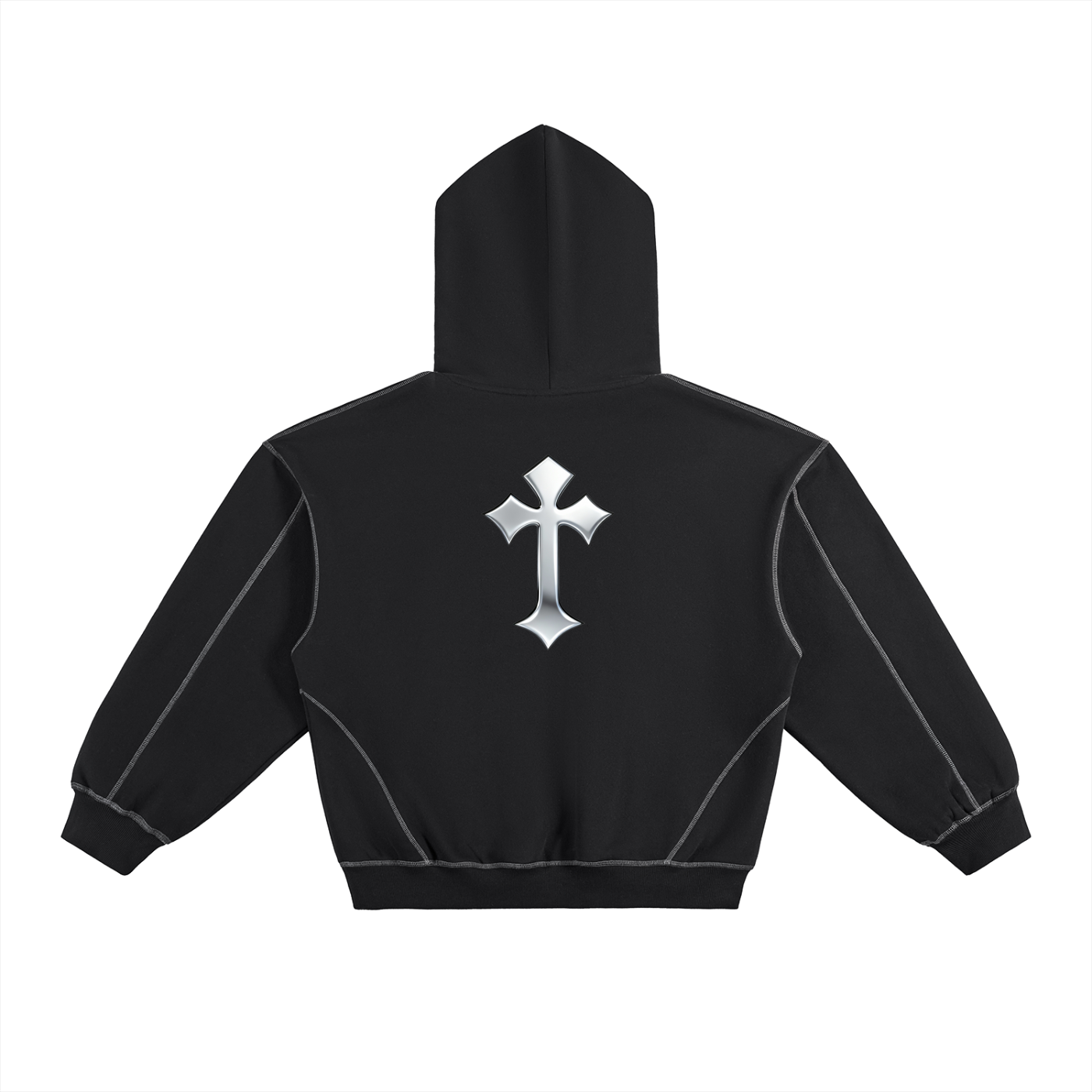 CHROME STAR | SS | Contrast-Stitched Boxy Fleece Hoodie